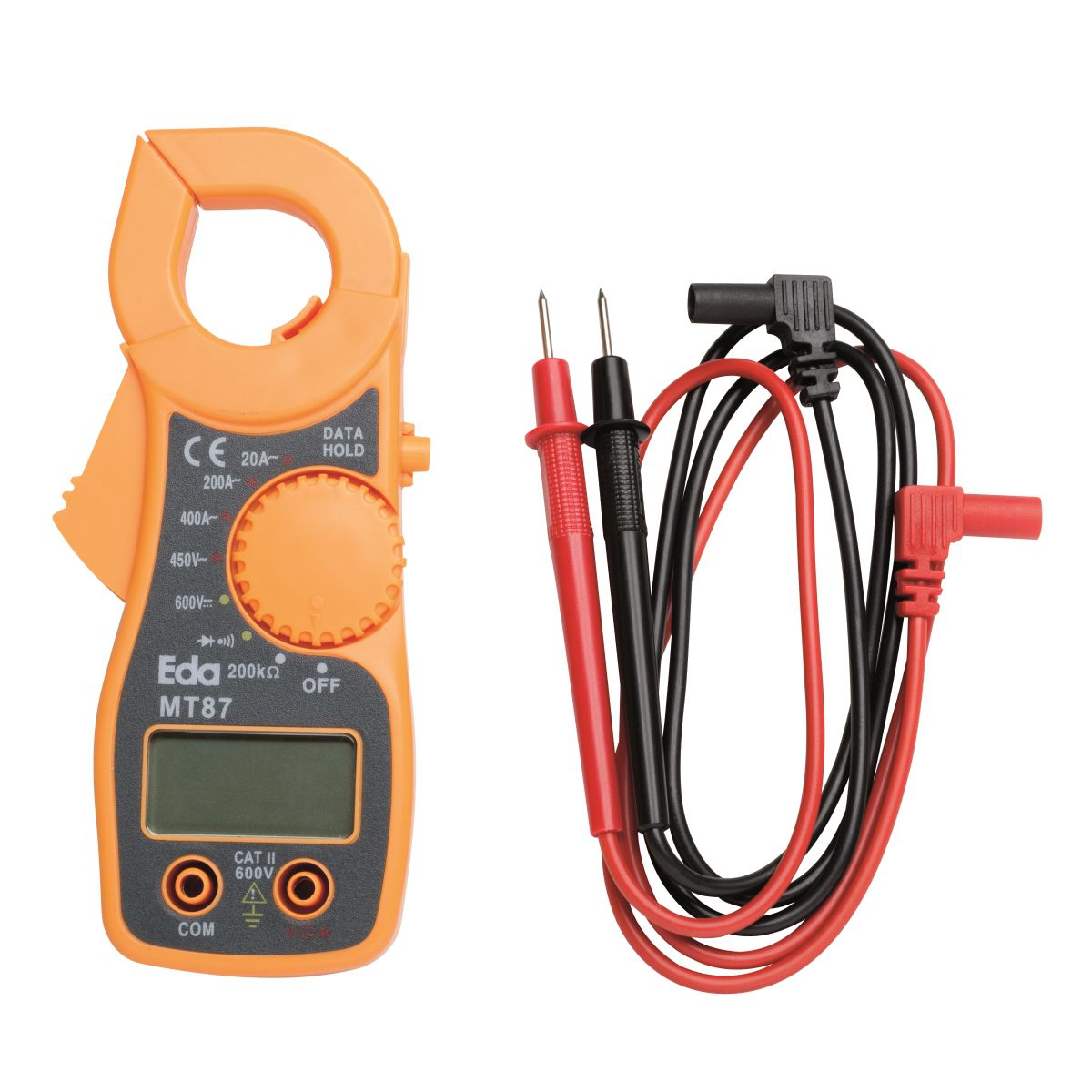 Permite medir voltagem AC/DC, corrente AC, resistência, diodos e fazer teste de continuidade audível. Utiliza 2 pilhas AAA (inclusas).
