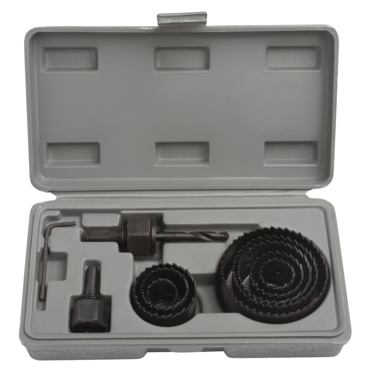 - 8 Serras copo: 3/4? (19 mm), 7/8? (22 mm), 1.1/8? (29 mm), 1.1/4? (32 mm), 1.1/2? (38 mm), 1.3/4? (44 mm), 2? (51 mm) e 2.1/2? (64 mm).