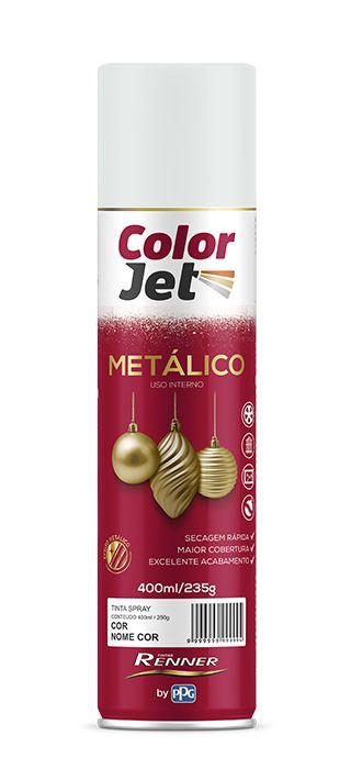 Color Jet METÁLICO é uma tinta spray elaborada com produtos de alta qualidade, indicada e aprovada para uso interno e em objetos artesanais, decorações, gesso, cerâmica, madeira, ferro, metais, papéis e etc.
